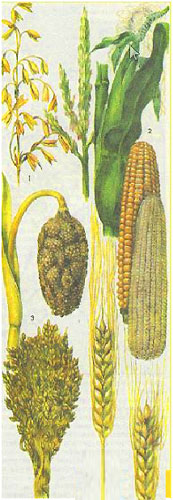 Cereálie dělíme na jarní a ozimé plodiny. Zimní chleba (ozimá pšenice, ozimé žito a ozimý ječmen) se vysévají koncem léta nebo začátkem podzimu před nástupem stabilních mrazů. Sklizeň se sklízí v následujícím roce. Na začátku růstu a vývoje potřebují nízké teploty (od 0 do 10°). Jarní rostliny Počáteční fáze vývoje procházejí při zvýšených teplotách (od 10-^12 do 20°), proto se vysévají na jaře a sklizeň obilí dostávají ještě v témže roce. Zimní zrna jsou produktivnější než jarní zrna, protože lépe využívají podzimní a zimní-jarní zásoby vlhkosti a živin, na podzim tvoří dobře vyvinutý kořenový systém a povrch listů. Ozimé plodiny však trpí nepříznivými podmínkami zimování: silnými mrazy, střídavými táními! a mrazy, ledová krusta, množství sněhu a tání vody. V oblastech, kde jsou tuhé zimy s malým množstvím sněhu a častými podzimními suchy, například v Povolží, na jižním Uralu, na Sibiři a v severním Kazachstánu, se ozimé plodiny téměř nepěstují. Umístění obilných plodin souvisí především s jejich biologickými vlastnostmi a půdními a klimatickými podmínkami. V evropské části Ruské federace jsou rozšířeny ozimy a v severních oblastech s těžšími zimami se pěstuje především ozimé žito, nejodolnější plodina; ve středních, západních a jižních oblastech – ozimá pšenice a v nejjižnějších oblastech navíc ozimý ječmen.